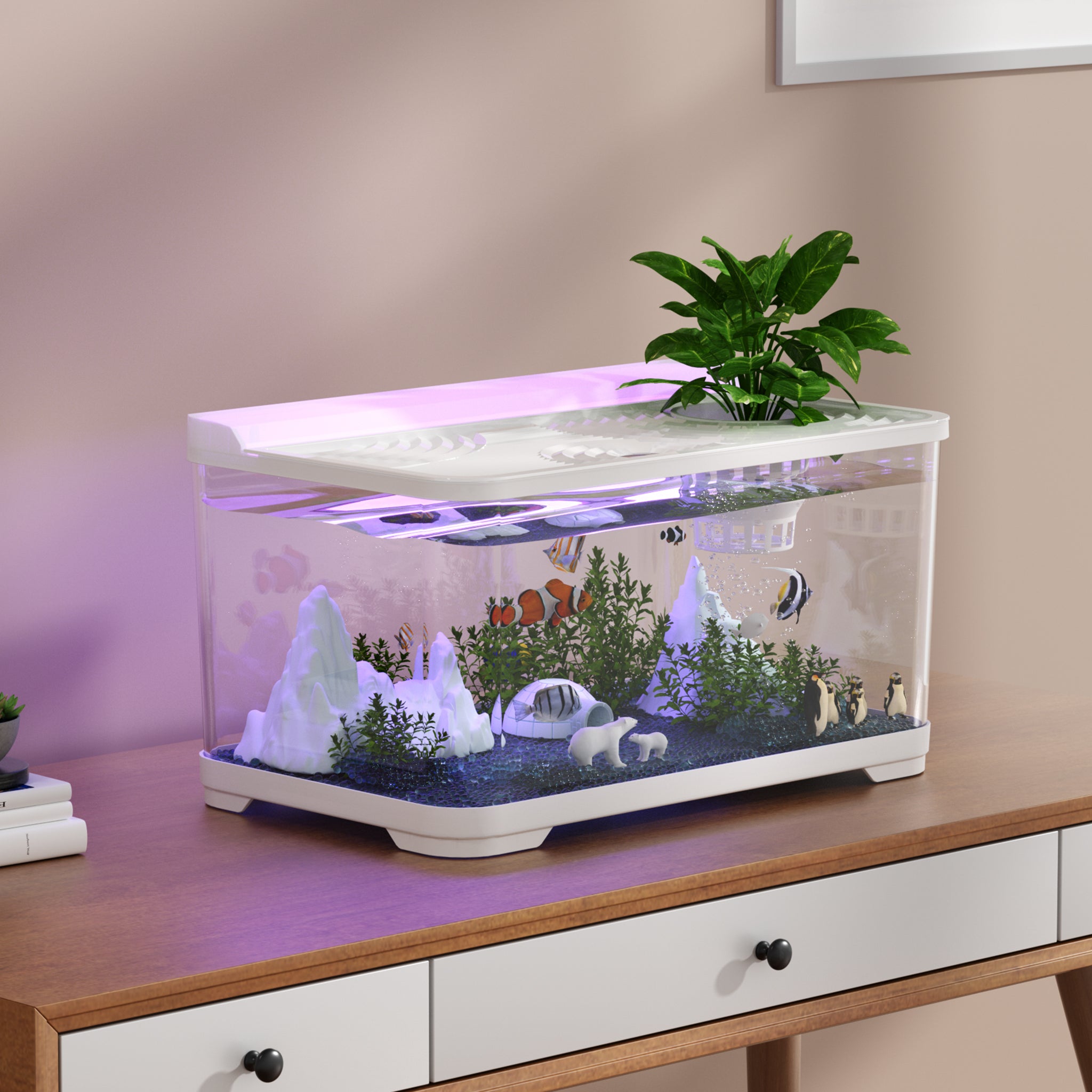 Worse, most aquarium products felt the same: clunky glass (hard to recycle) or flimsy disposable plastic, never fitting a warm, eco-friendly home.